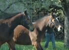 Der Herbst kam und damit einher auch die Fohlenschauen in der Schweiz. Auf der Fohlenschau in Thun begegnete ich Lunas jüngster Schwester Miss, die noch keinen Käufer hatte. Ich kaufte sie mit der Überzeugung, dass ich einen guten Platz in Deutschland für sie finden würde. Das war dann ja auch so. Mein Mann wollte auf keinen Fall noch ein Pferd mehr. Von Queshya konnte ich mich nicht trennen. Miss ging in den Besitz von meiner Freundin Renate über, die beiden hatten sich gesucht und gefunden. Luna war sehr sehr weit weg, trotzdem konnte ich die Hoffnung nicht so recht aufgeben. Luna selbst bestärkte mich darin, denn jedes Mal wenn ich sie besuchte, sei es bei Klaus, auf einer Fohlenweide im Berner Oberland oder gar im Jura ich rief sie und sofort kam sie zielstrebig zu mir, ha und nicht zu Tanja, Klaus oder anderen. Zunächst dachten wir noch es sei Zufall, aber mit der Zeit wurde klar, dass es keiner war.