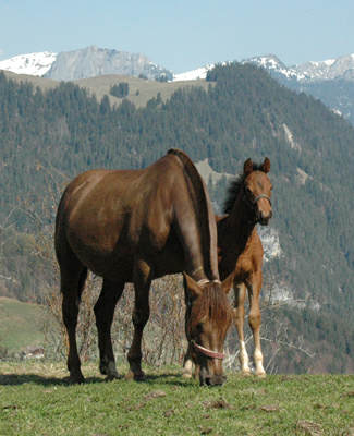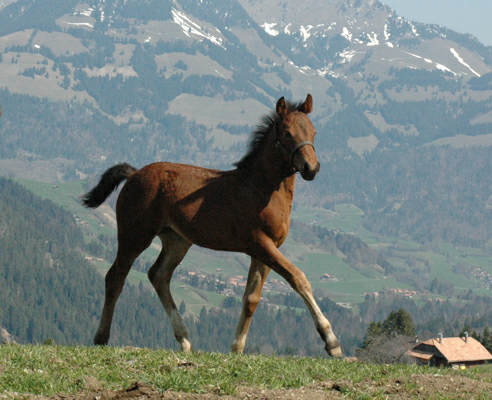 Alles fing damit an, daß meine Freundin Barbara in die Schweiz fuhr, um Ihre Stute Mandoline decken zu lassen. Wir schauten uns in der Schweiz viele Hengste an. Als wir Quinto sahen, war alles klar! So ließ Barbara Mandoline im Frühjahr 2004 von Quinto decken. Damit war es aber noch nicht genug, wir wurden restlos vom Quintovirus infiziert.